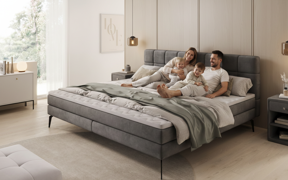 Unsere Familien Betten bieten extra viel Platz für gemeinsame Nächte. Großzügige Liegeflächen, hochwertiger Komfort und modernes Design - perfekt für Eltern, Kinder und alle, die mehr Raum lieben.
