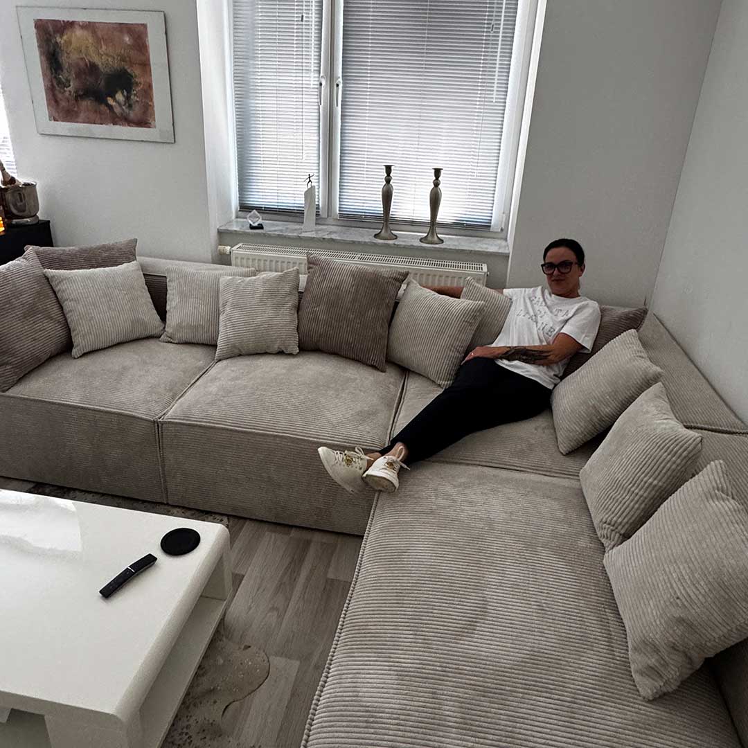 Der Cord-Stoff ist top, aber was mich richtig überzeugt hat, ist die modulare Bauweise. Ich konnte das Sofa exakt nach meinen Vorstellungen anpassen – richtig praktisch!