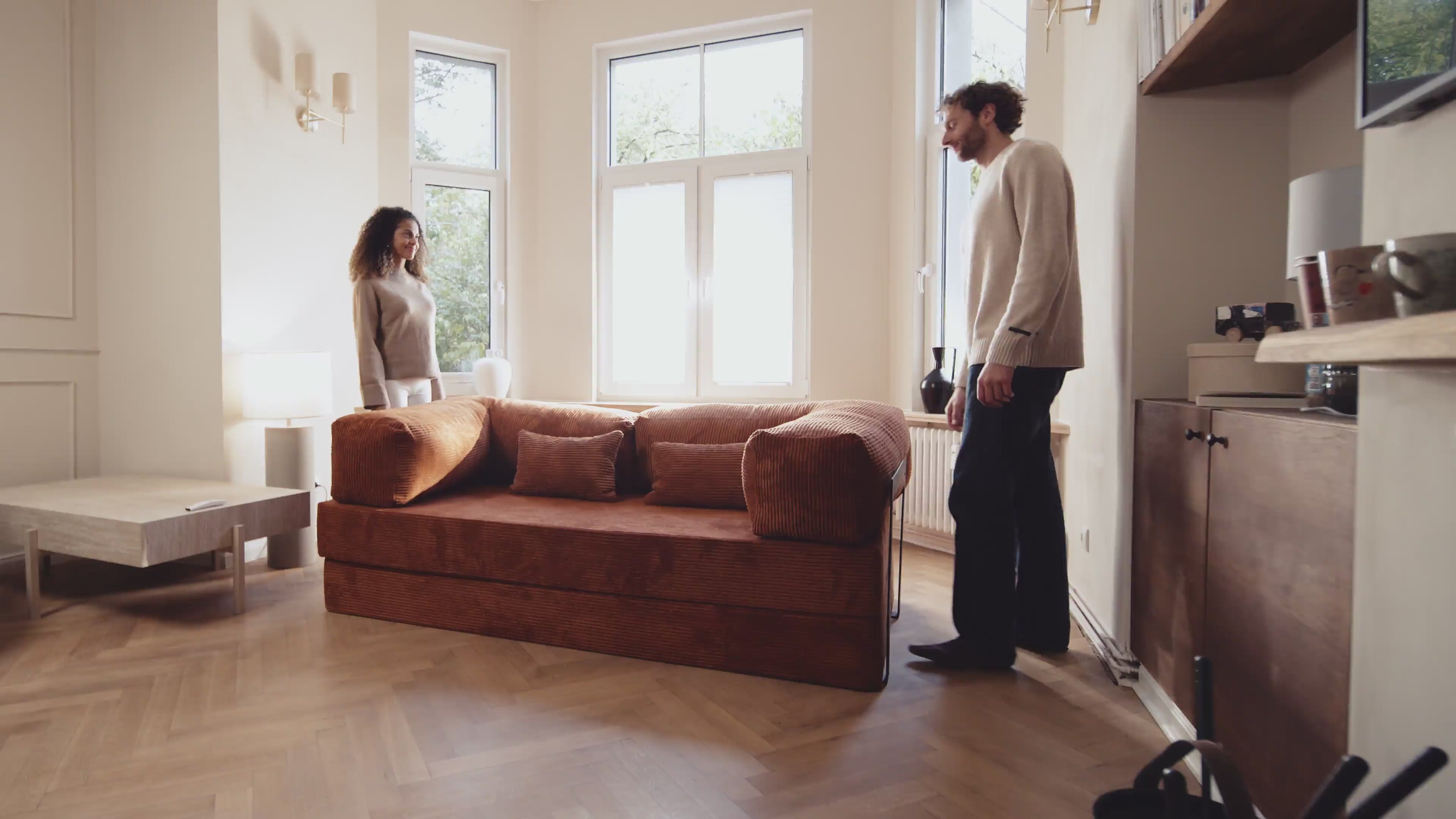 Prepnite v okamihu zo štýlového pohodlia na sedenie na priestrannú posteľ pre hostí.