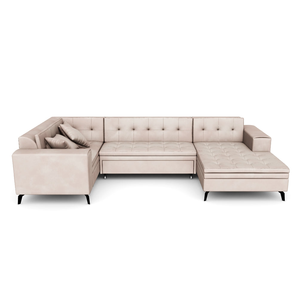 Štýlový U-tvarovaný dizajn a priestranná ležiaca plocha nášho gauča Neola ho robia vrcholom vášho obývacieho priestoru. Dá sa ľahko premeniť na rozkladací gauč, poskytuje miesto pre hostí s dodatočnou ležiacou plochou až 275 x 120 cm. S rozmermi 340 x 180 x 93 cm je Neola ideálna pre veľké miestnosti. Pohodlné sedenie je vyrobené z odolnej pružinovej vlny a flexibilného peny T30, aby sa predišlo napätiu a bolestiam chrbta.